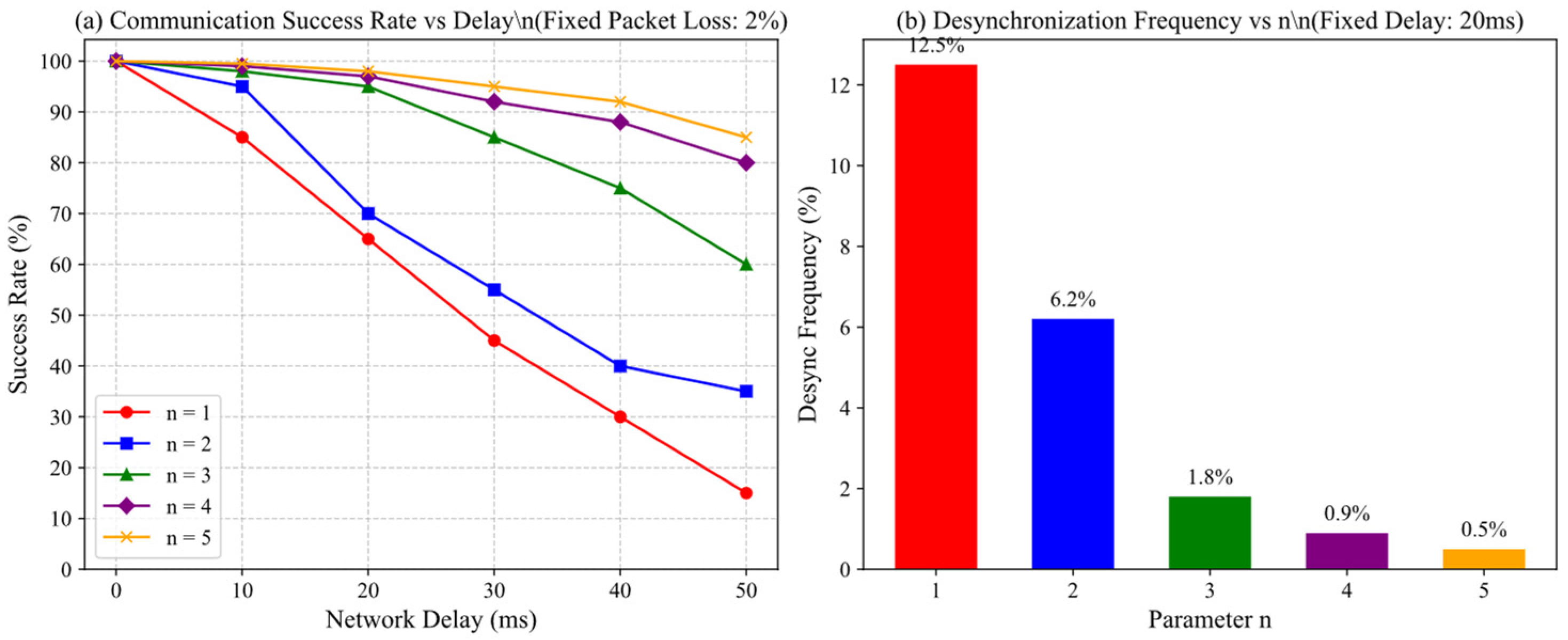 | n Value | Window Size | Avg. Desync Rate (%) | Service Interruption Rate (%) | Memory Overhead Increase (%) |