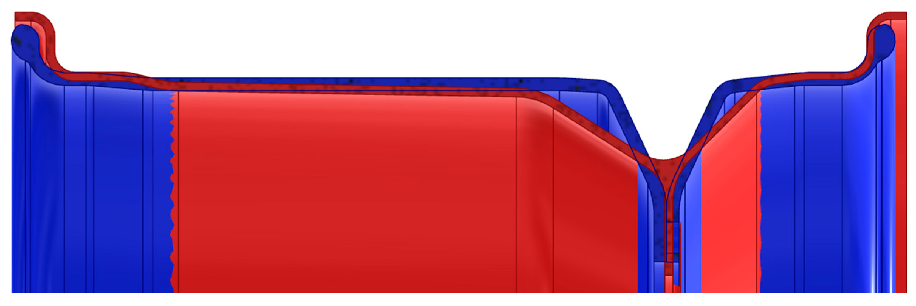 Another load experienced by the rims is the tire pressure. A pressure of 4 bar was set on the rim’s surface, reflecting the pressure exerted during tire mounting, as this is the maximum pressure needed to slide the tire onto the rim. When inflated, the tire’s sidewall stretches the bead under this pressure, but since simulating the entire tire was beyond the scope of this paper, this effect was not simulated.