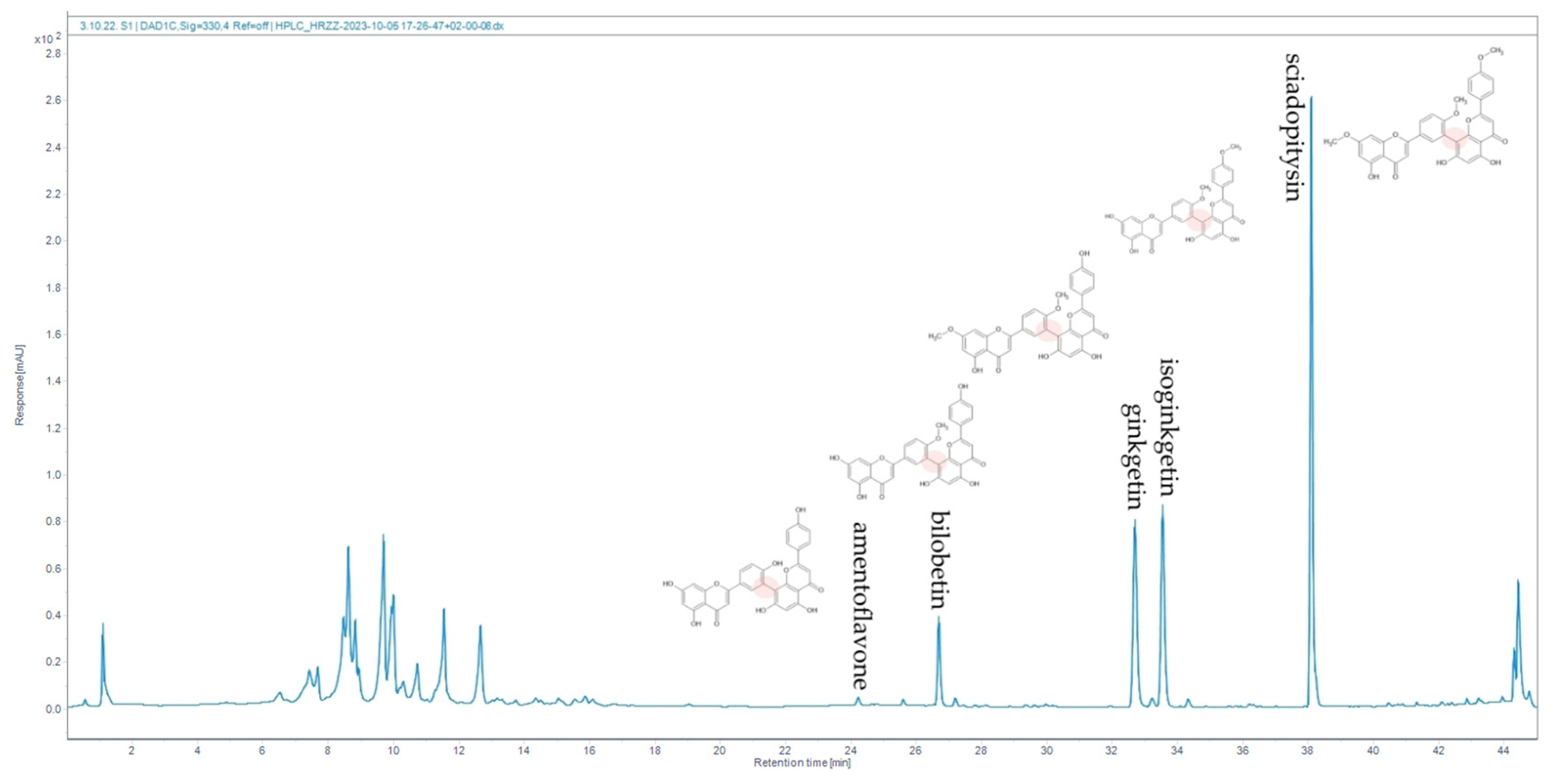 | Ginkgetin | 1675.26 ± 35.86 a | 1497.30 ± 57.26 ab | 1350.85 ± 11.13 ab | 1324.33 ± 20.35 ab |