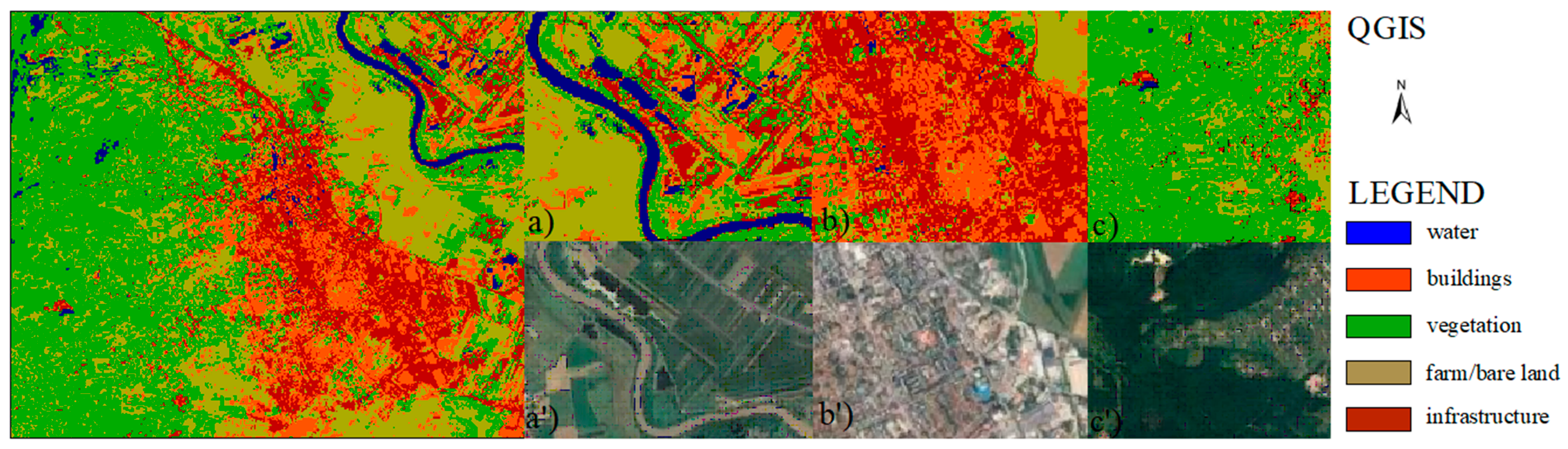 - Stoica, I.-V.; Vîrghileanu, M.; Zamfir, D.; Mihai, B.-A.; Săvulescu, I. Comparative Assessment of the Built-Up Area Expansion Based on Corine Land Cover and Landsat Datasets: A Case Study of a Post-Socialist City. Remote Sens. 2020, 12, 2137. [Google Scholar] [CrossRef]