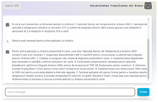 - Modran, H.A.; Ursuțiu, D.; Samoilă, C.; Gherman-Dolhăscu, E.-C. Developing a GPT Chatbot Model for Students Programming Education. In Proceedings of the 21st International Conference on Smart Technologies & Education (STE2024), Helsinki, Finland, 6–8 March 2024; Lecture Notes in Networks and Systems. Springer: Cham, Switzerland, 2024; Volume 1028. [Google Scholar] [CrossRef]