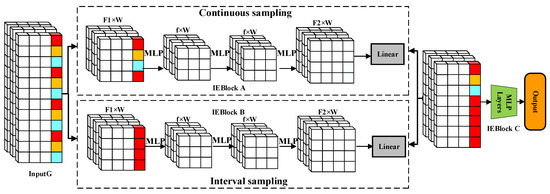 Let denote the 2D input matrix processed by each IEBlock. The i-th column is denoted as , and the j-th row as . For each column, a mapping (where f < F1) is applied to perform temporal feature extraction. This process is formalized as follows: