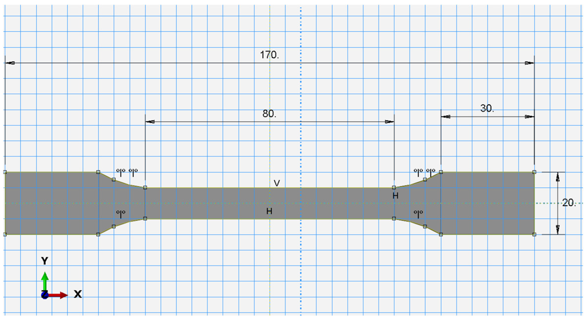Sketch of the uniaxial testing specimen used in FEA.