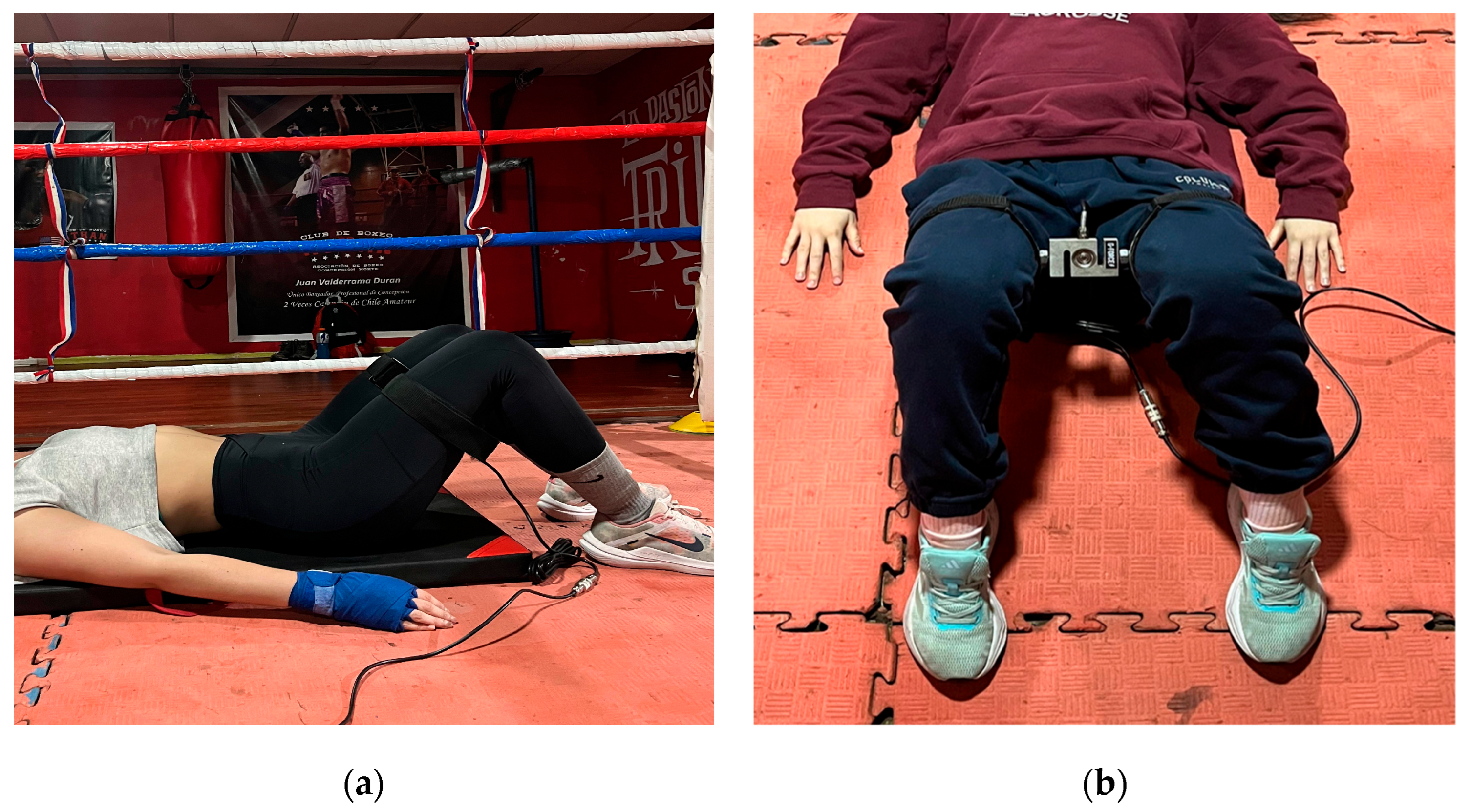 15]. The protocol was reviewed and approved by the Ethics Committee of the Central University of Chile (Protocol Code: 89/2025; Approval Date: 23 September 2025). Data collection was performed on 24 and 25 September 2025, with a 24 h interval between the test and retest sessions, following previous recommendations for reliability and validity assessments using isometric dynamometers [