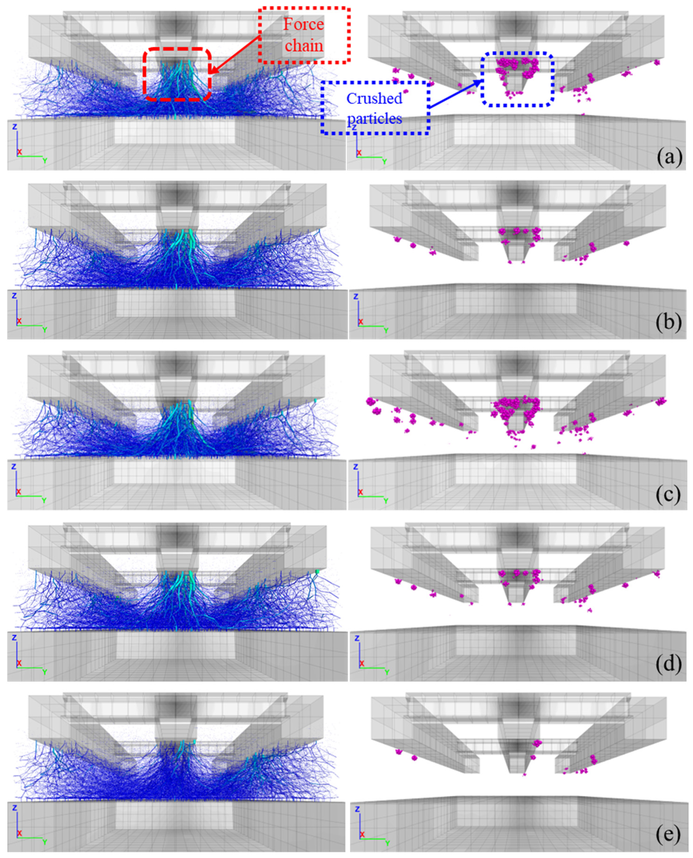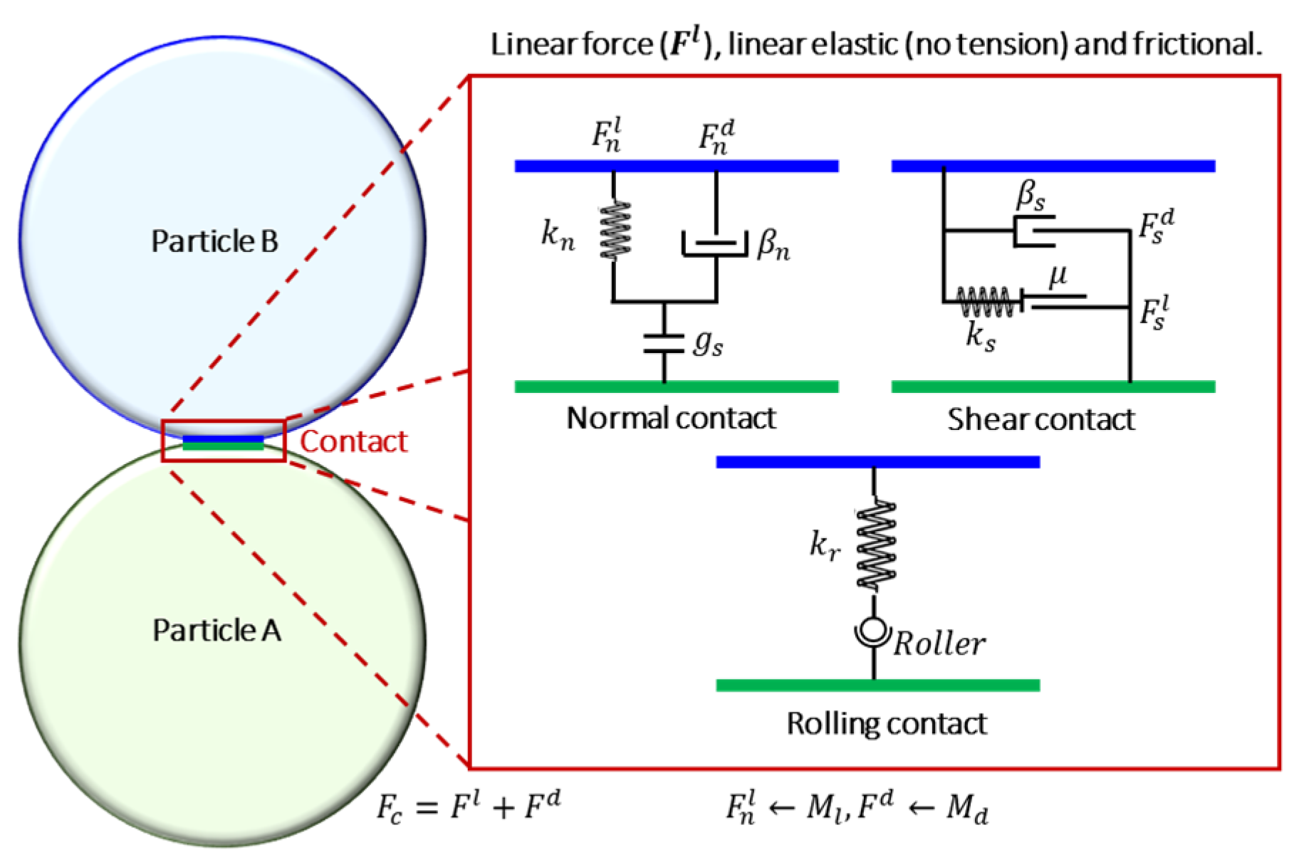 | Contact Type | Normal Stiffness, kn | Shear Stiffness, ks | Friction Coefficient, μ | Rolling Friction Coefficient, μr |