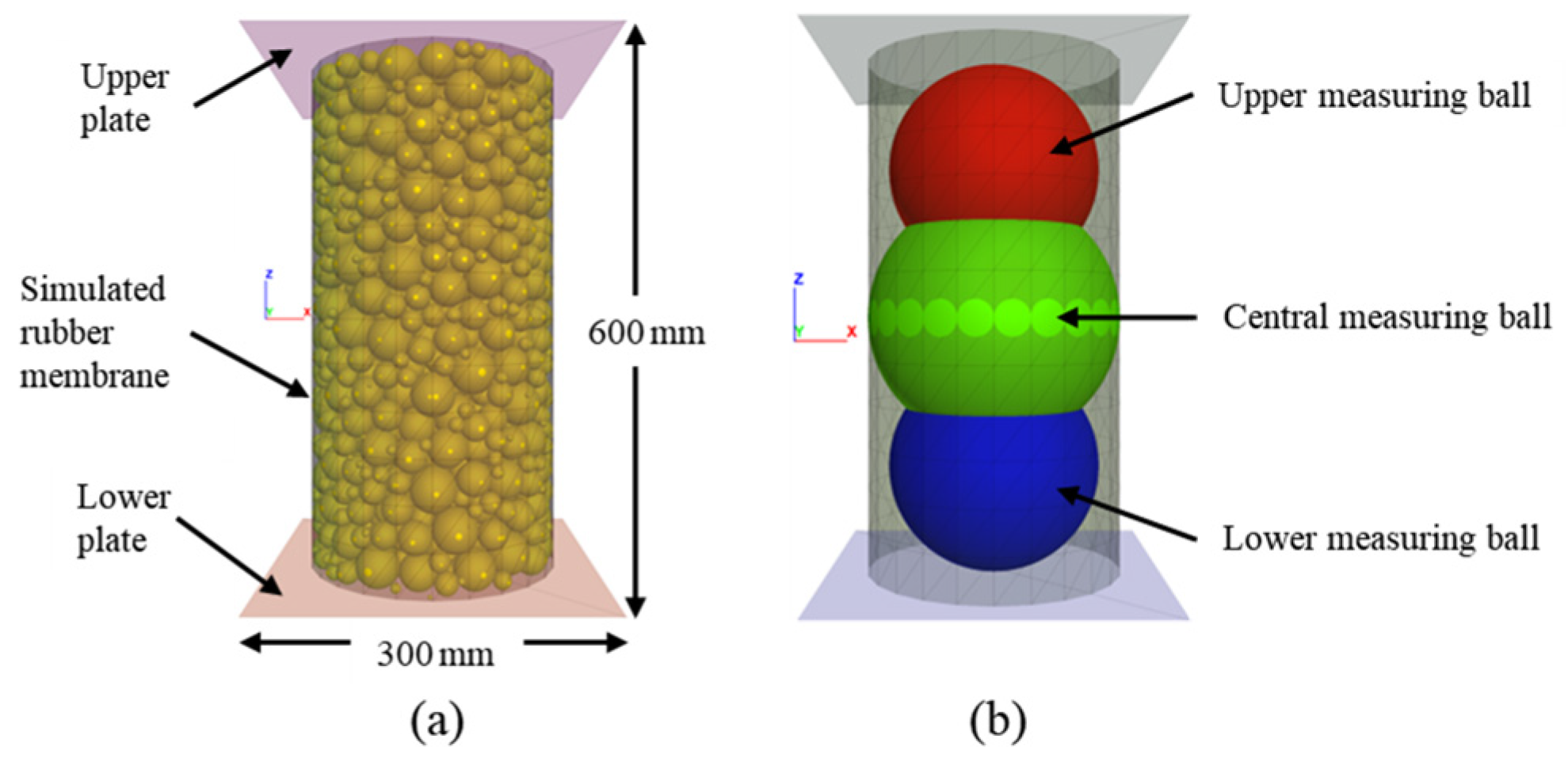 - Itasca Consulting Group. PFC3D 6.0 Particle Flow Code in Three Dimensions, Theory and Implementation Volume; Itasca Consulting Group: Minneapolis, MN, USA, 2016. [Google Scholar]