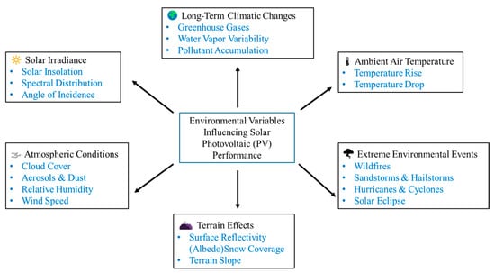 A critical long-term degradation factor is potential-induced degradation (PID), which occurs due to high voltage differentials between the PV modules and grounding. This can cause a gradual leakage of charge, resulting in a significant decline in power output. The use of PID-resistant modules, optimized system grounding, and periodic voltage stress tests can help prevent this issue. Extreme weather conditions such as hailstorms, high winds, and heavy snowfall can cause physical damage to PV modules and structural failures in mounting systems. Strong winds can lead to misalignment or detachment of panels, while hail impact can result in glass fractures and reduced light absorption. Robust racking systems, tempered glass panels, and aerodynamic designs are essential for enhancing mechanical durability. To combat these environmental and degradation-related faults, advanced monitoring techniques such as thermal imaging, drone-based inspections, AI-powered predictive maintenance algorithms, and real-time performance tracking are increasingly adopted. These technologies enable early fault detection, preventive maintenance, and system optimization, ensuring higher reliability, extended operational lifespan, and improved efficiency of solar PV systems [82]. Figure 9 represents the visual representation of various factors that impact the power output of photovoltaic modules, leading to a gradual decline in performance over time.