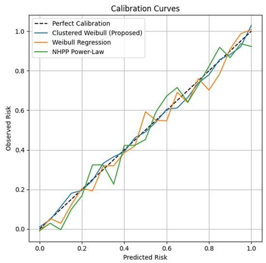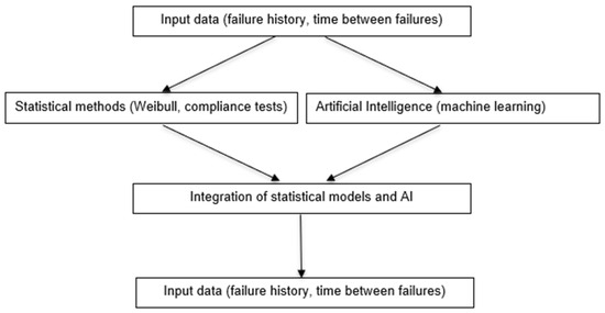 The Weibull distribution is a commonly used statistical tool in reliability analysis, particularly for describing wear-dependent component failures. For example, in modeling the reliability of ship propulsion systems, the Weibull distribution is used for wearing components to obtain realistic failure predictions [30]. Currently, classical statistical methods are increasingly being combined with AI algorithms to improve equipment life prediction. For example, a method has been proposed in which an artificial neural network learns to predict the distribution of times to failure, and its results have been compared with traditional Weibull models. These studies demonstrated the advantage of a neural network approach over a purely statistical Weibull model—the AI-based model provided predictions that were closer to reality and potentially reduced maintenance costs thanks to improved prediction accuracy [14]. These results indicate that combining service life distributions (such as Weibull) with artificial intelligence algorithms can significantly improve the effectiveness of reliability analyses.