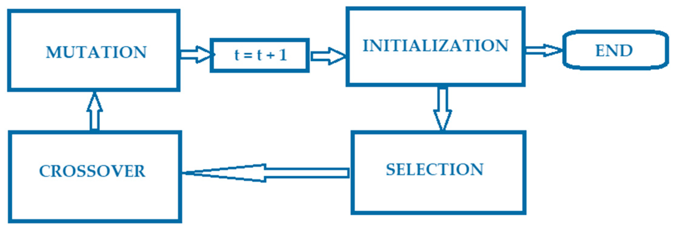 25]. Genetic algorithms start from an initial set of possible solutions to the problem (usually chosen randomly), called a “population” in the literature. In this population, everyone is called a “chromosome” and represents a possible solution to the problem. In almost all cases, the chromosome is a string of symbols (usually represented as a string of bits). These chromosomes evolve over successive iterations called generations. In each generation, the chromosomes are evaluated using some fitness measures. To create the next population, the best chromosomes from the current generation (population) are selected, and new chromosomes are formed using one of the three essential genetic operators: selection, crossover, and mutation [