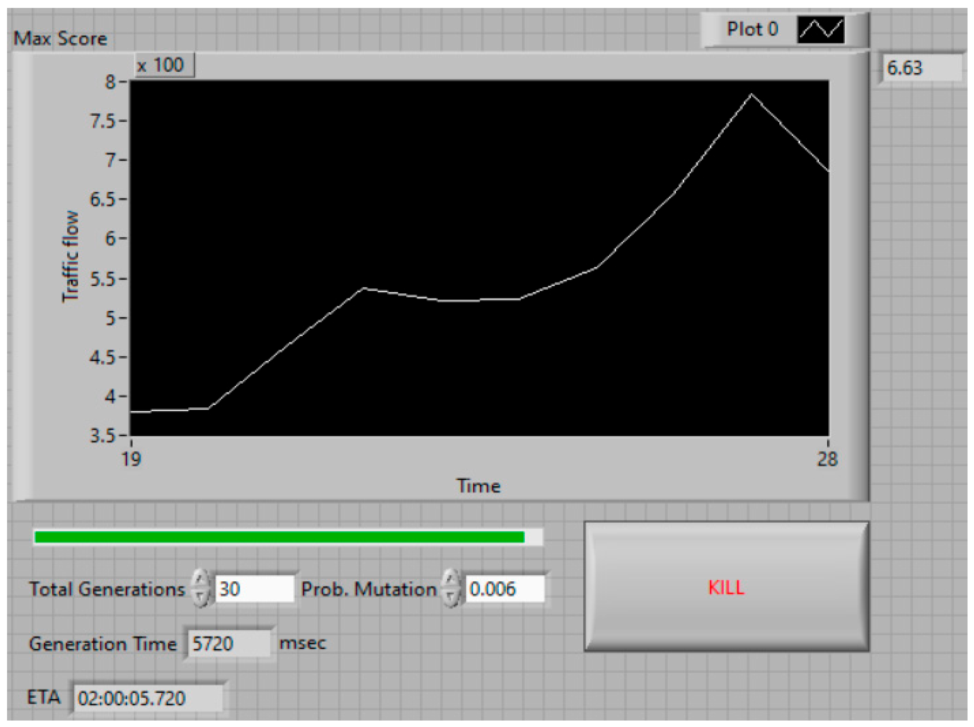 Figure 5 and the results obtained for the ETA value and computation time in traffic optimization. The probability mutation parameter allows for adaptive adjustment, thereby improving the GA.