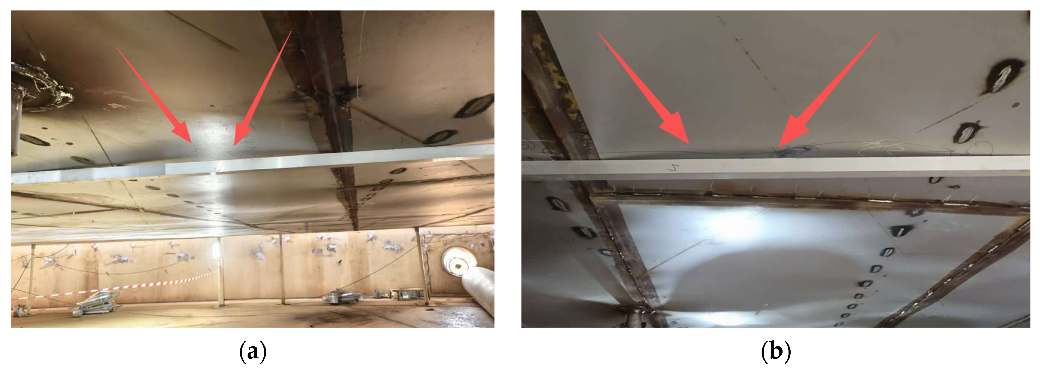 - Shi, L.; Shuai, J.; Wang, X.; Xu, K. Experimental and numerical investigation of stress in a large-scale steel tank with a floating roof. Thin-Walled Struct. 2017, 117, 25–34. [Google Scholar] [CrossRef]