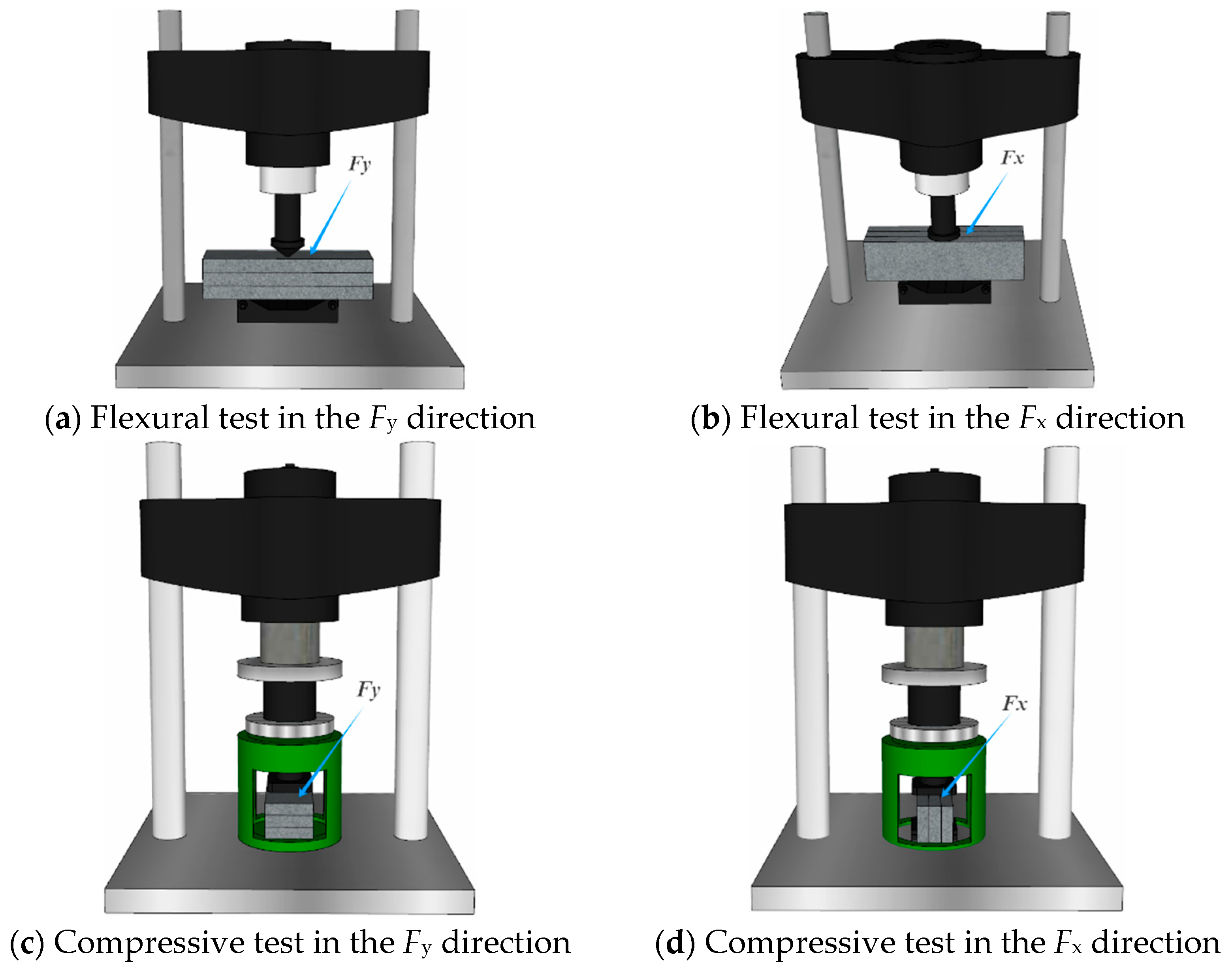 - Wu, W.H.; Luo, S.R.; Ou, X.; Wang, D.H.; Huang, H. Effect of mineral admixtures on mechanical anisotropy of 3D printed cement-based materials. J. Fuzhou Univ. (Nat. Sci. Ed.) 2023, 51, 286–292. [Google Scholar]