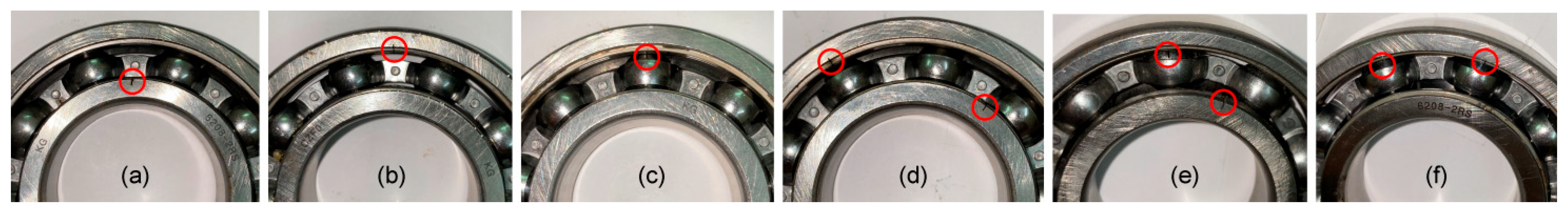 - Thuan, N.D.; Hong, H.S. HUST bearing: A practical dataset for ball bearing fault diagnosis. BMC Res. Notes 2023, 16, 138. [Google Scholar] [CrossRef]