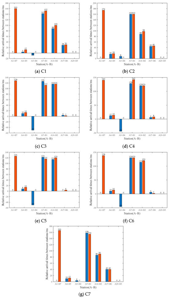The observed deviation in the relative P-wave arrival times between the two systems directly impacts the consistency of their respective positioning results. This discrepancy, even in the absence of variations in their underlying positioning algorithms, inherently leads to divergent positioning outcomes for the two systems. Consequently, further investigation into their actual positioning results remains imperative to comprehensively evaluate the positioning capabilities of both systems.
