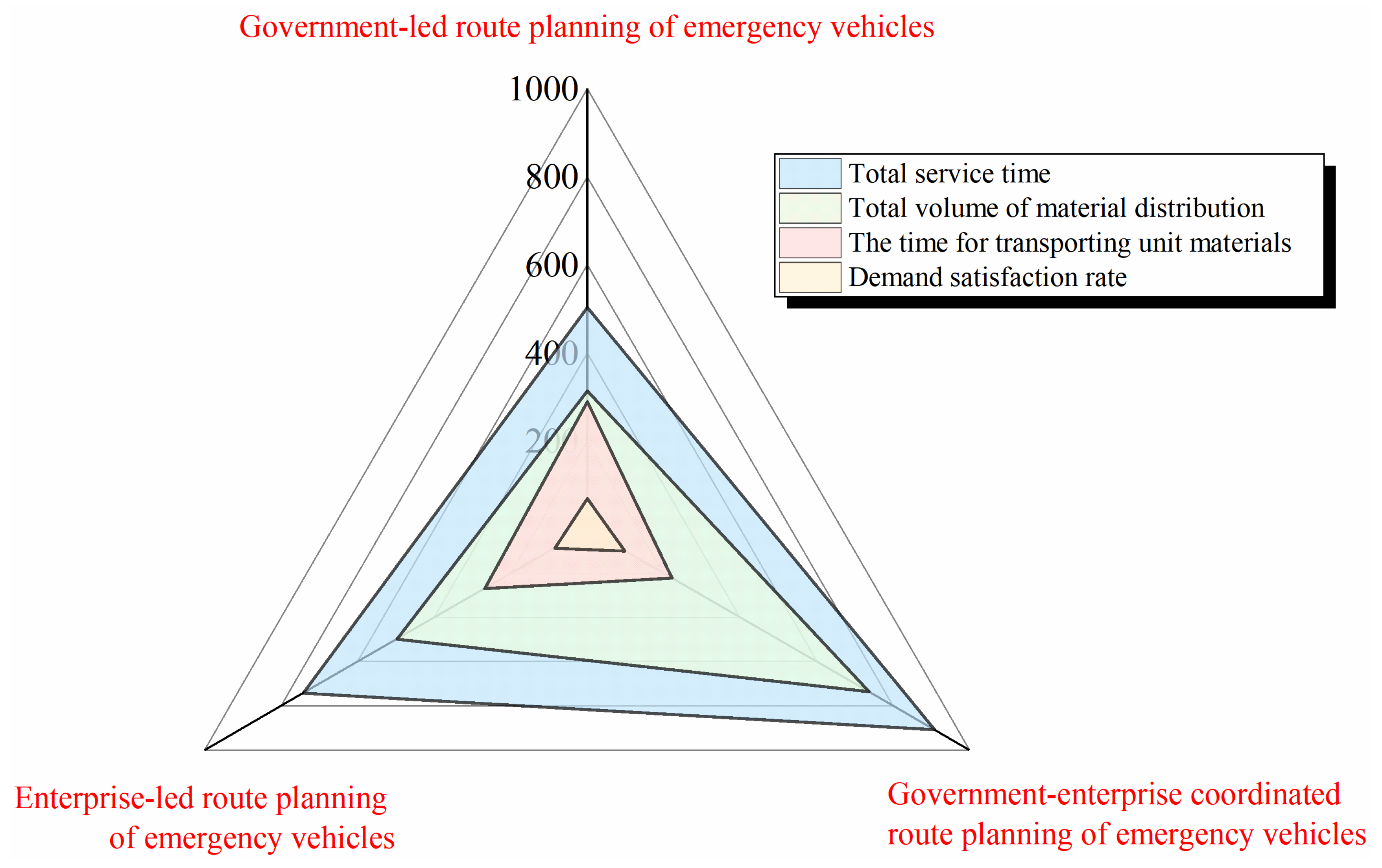 - Based on unilateral soft time windows, delivery services that exceed the time windows are penalized. Emergency vehicle paths are planned within decision cycles, and services are executed at affected sites.