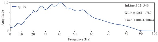 The character of this extracted wavelet, presented in Figure 8, proved to be ideal for high-resolution inversion. Its symmetric, zero-phase form in the time domain ensures that geological boundaries are imaged at their true vertical positions, free from phase-induced artifacts [76]. The corresponding amplitude spectrum (Figure 9) is equally important, revealing a broad and robust bandwidth that is essential for delineating the fine stratigraphy of the target formation.