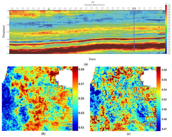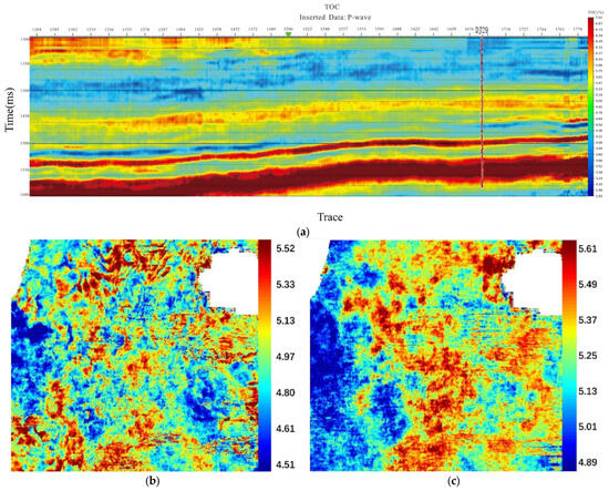 Despite the robust results, it is important to acknowledge the inherent limitations of this study, which provide context for the interpretation. Firstly, the stability of the Q-field estimation is contingent on the local signal-to-noise ratio; in areas of poor data quality, the Q-model may carry higher uncertainty. Secondly, the post-stack inversion, like all inversion methods, is subject to non-uniqueness, with the final result being influenced by the low-frequency model constructed from sparse well control. Perhaps most significantly, the prediction of TOC and porosity relies on empirical petrophysical transforms (Equations (15) and (16)) that assume a spatially constant relationship. This assumption may not fully capture lateral variations in mineralogy or diagenesis, meaning the derived property maps should be viewed as powerful indicators of trends and sweet spots rather than absolute point-by-point quantitative values.