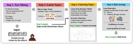 Figure 1, the fire investigation texts were first analyzed using topic modeling to identify latent semantic structures.
