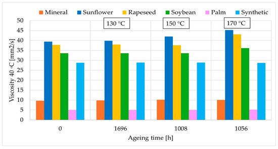 Viscosity is a critical property affecting the cooling performance of insulating fluids, as it directly influences fluid flow within the transformer tank. Since the viscosity did not change in the ageing tests carried out in this study,