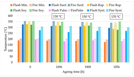 Similarly to the viscosity of the fluids, the flash and fire points did not change during ageing. Therefore, only the initial and final values of these parameters for each fluid are shown in