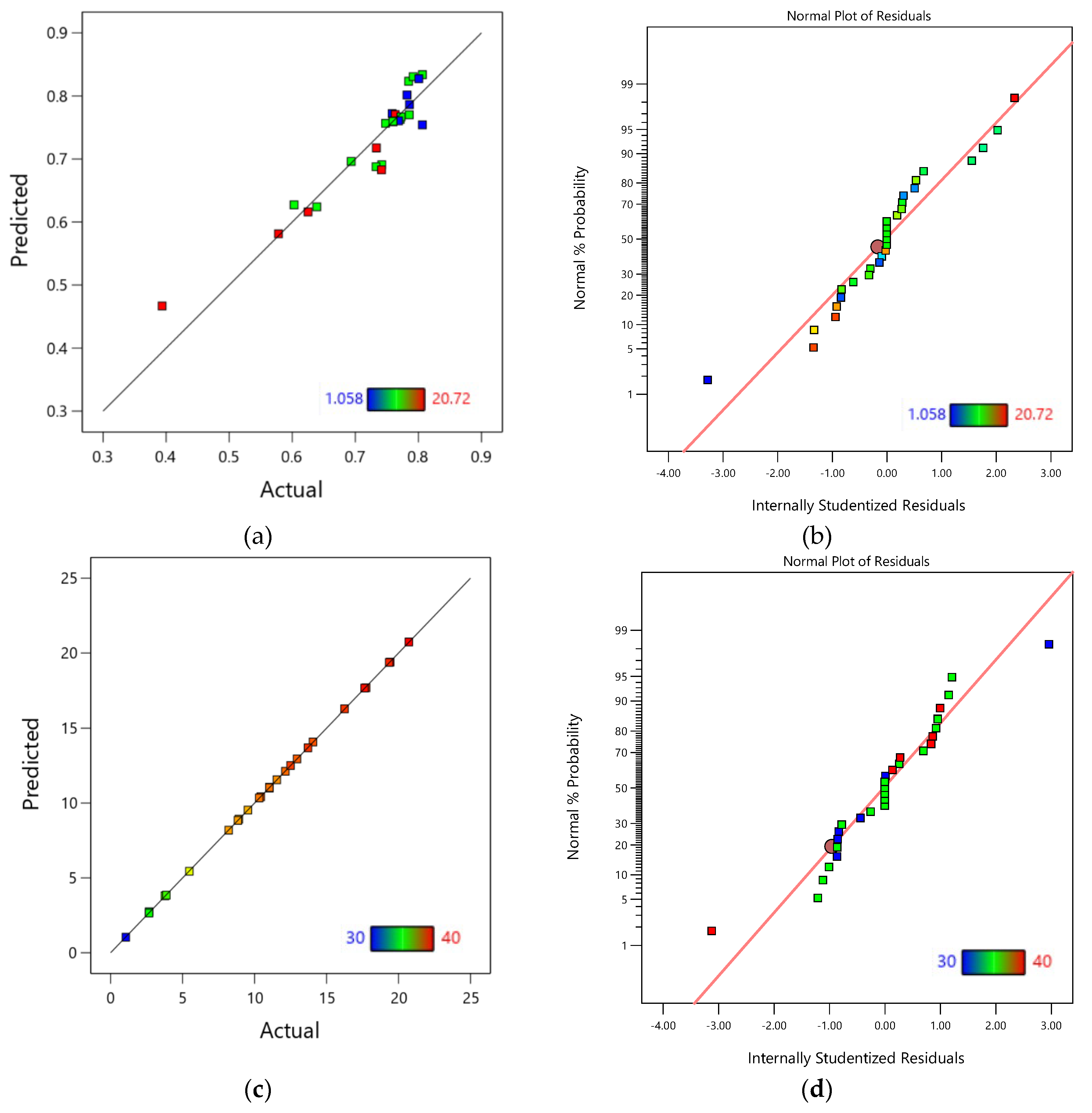 - ANOVA analysis yielded regression models with good prediction accuracy for COP, , and Diagnostic plots, including predicted vs. actual and normal probability charts, confirmed the models’ accuracy and statistical reliability.