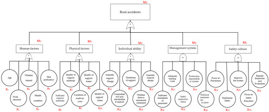 Fault tree of each factor level for roof accidents.