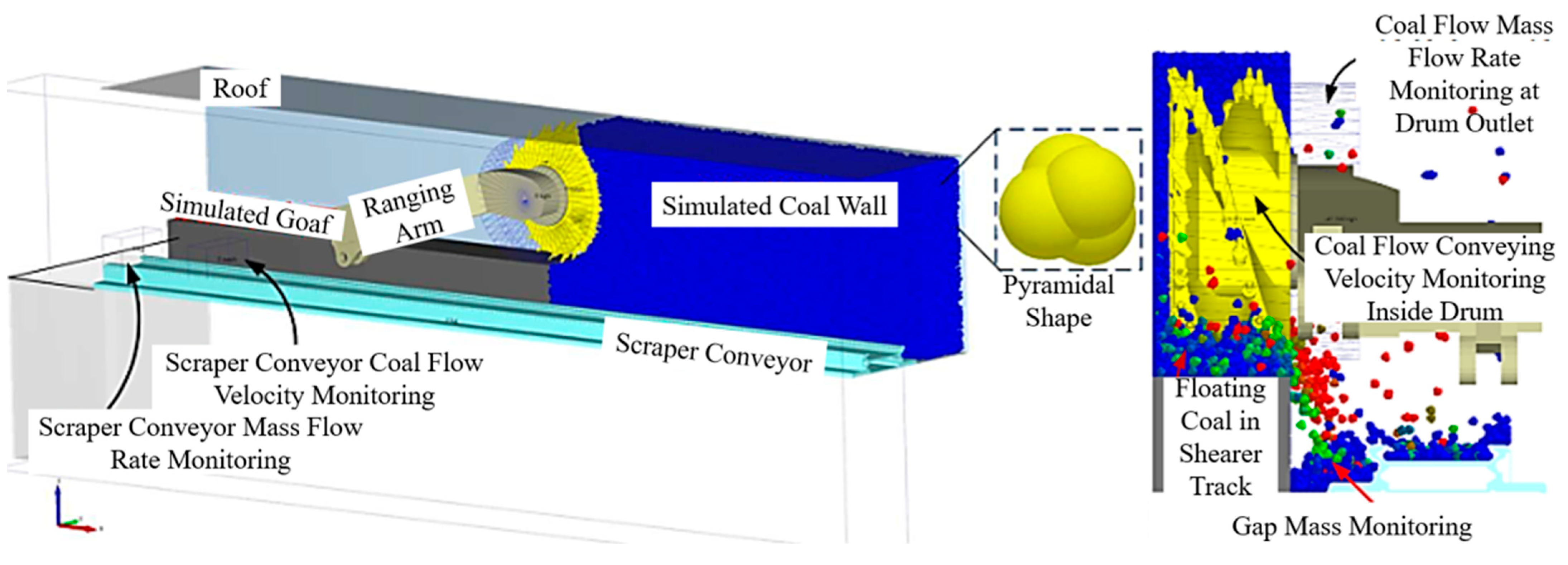 19. Zhang, M.; Zhao, L.; Shi, B. Coal falling trajectory and strength analysis of drum of shearer based on a bidirectional coupling method. Sci. Rep. 2024, 14, 9438. [Google Scholar] [CrossRef]
