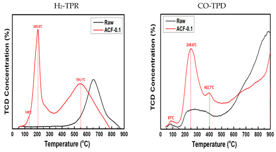 H2-TPR and CO-TPD analysis of raw ACF and ACF-0.1.