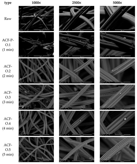 SEM images of ACF after high-purity oxygen plasma surface treatment.