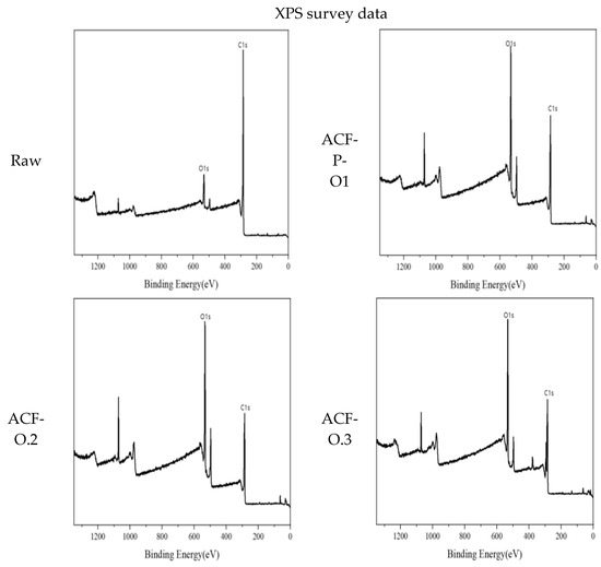 XPS survey spectra of ACF after high-purity oxygen plasma treatment.