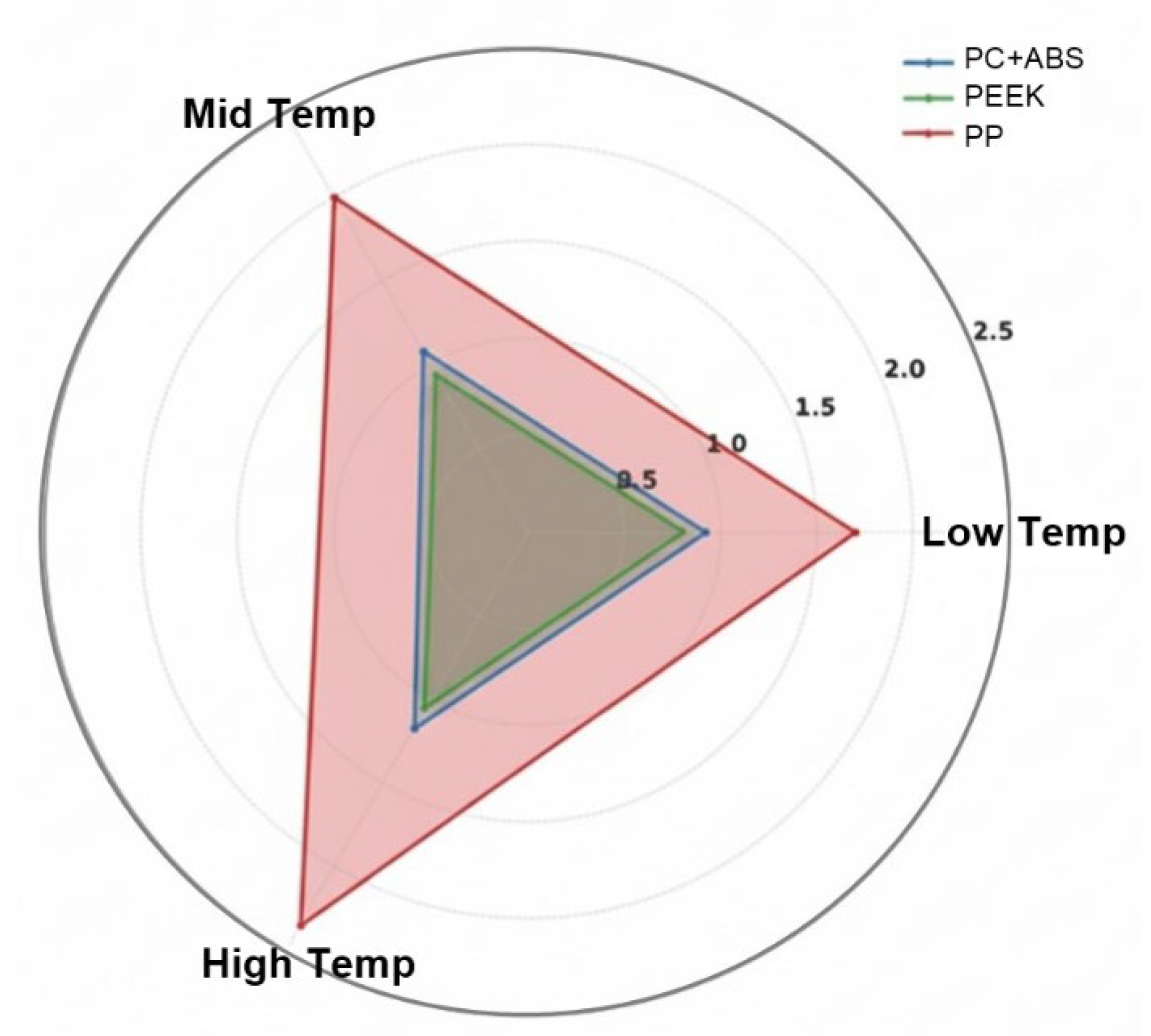 The reference material, aluminum, demonstrated the best performance in all parameters; however, it can only provide a sustainable solution for a limited number of applications due to its high cost, density, and difficulties in shaping. In this context, PC+ABS stands out as the most balanced alternative to replace aluminum; PEEK, on the other hand, can be used in special applications in which cooling measures can be taken if high structural strength is required. PP can be recommended only for designs in which thermal loads are low and the main priority is cost. This comparison of multiple criteria demonstrates that decisions based on a single performance measure are insufficient and that in the selection of the material, the production and operating conditions must be holistically evaluated. This comprehensive comparison is illustrated in