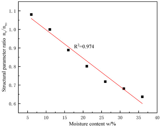 From Figure 1 and Figure 2, the relationship equation between moisture content and structural parameters can be obtained as follows: