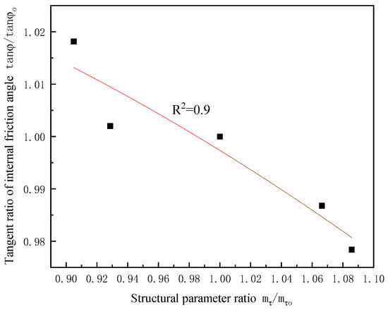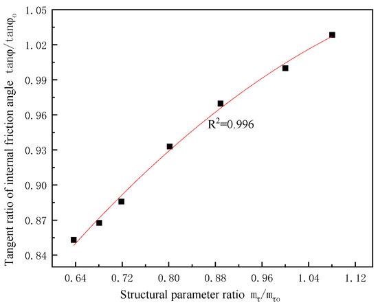 The functional relationship between the structural parameter ratio and the tangent ratio of the internal friction angle is as follows: