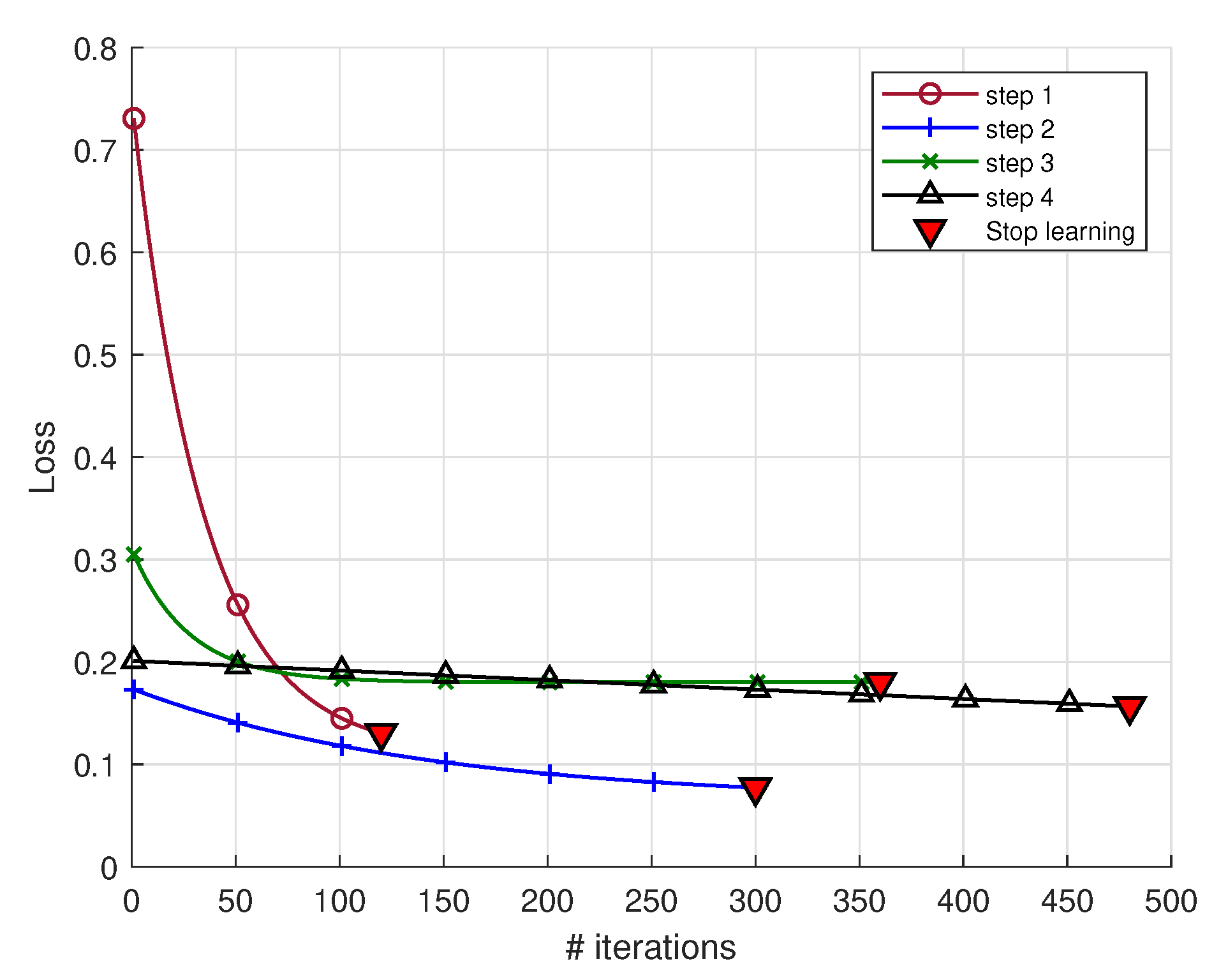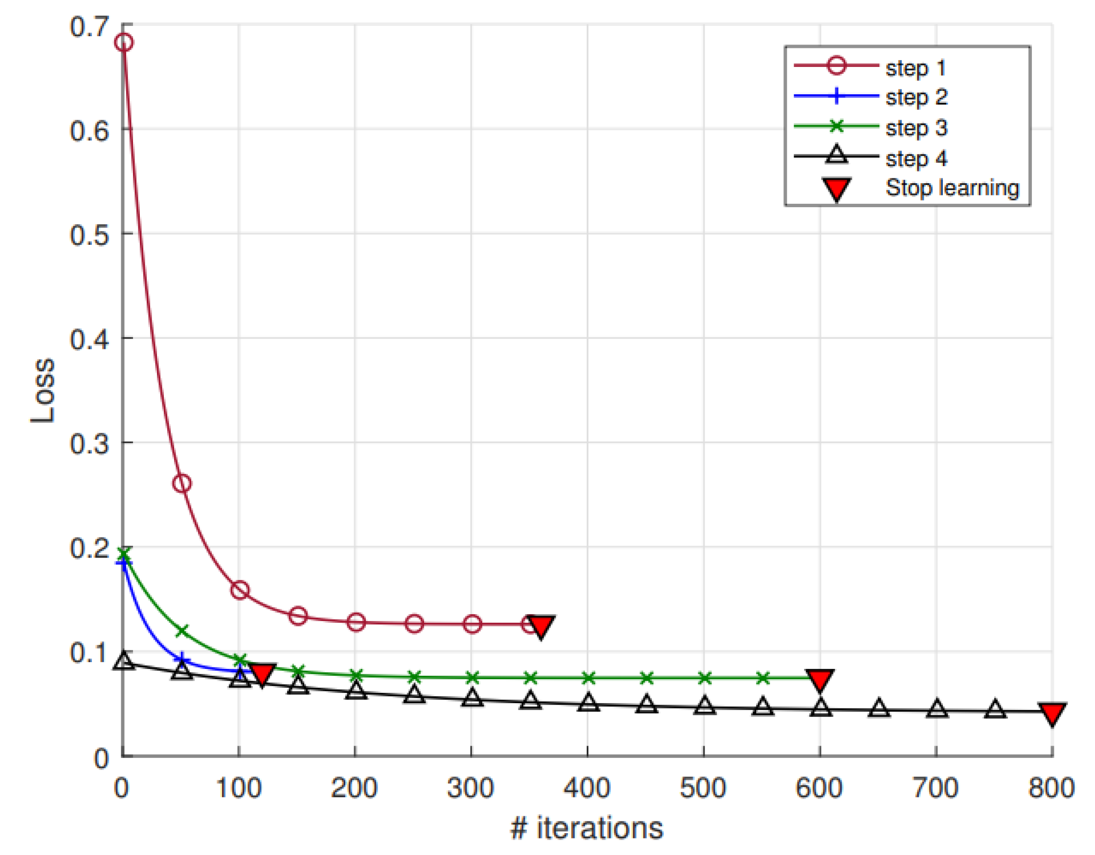 Figure 8. Learning stages of the ReSVD-CLNet. The loss was smoothed with a non-linear fit of exponential decay model.