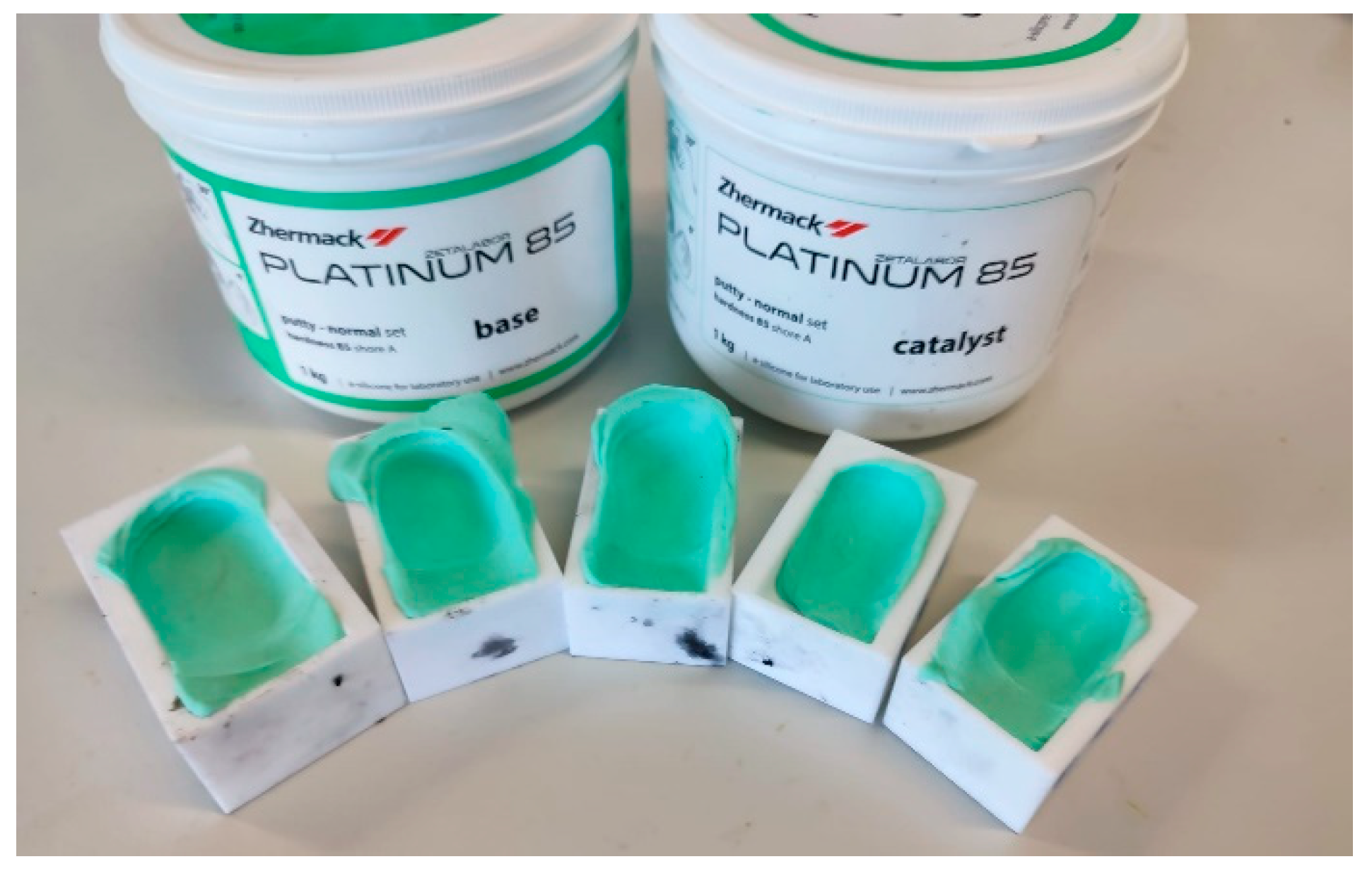 - Available online: https://servident.pl/powielanie/19922-fegura-sil-ad-special-shore-18-20-1-kg-1-kg.html?utm_source=chatgpt.com (accessed on 5 January 2024).