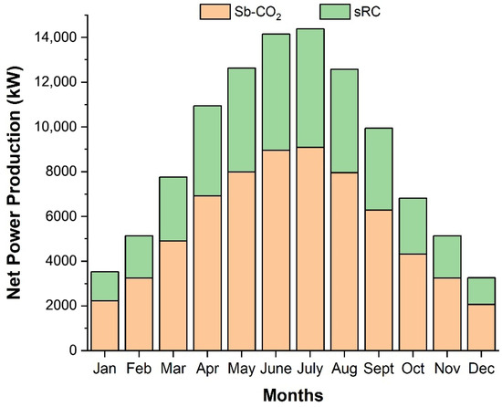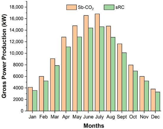 Monthly gross power production of the Sb-CO2 and the sRC.