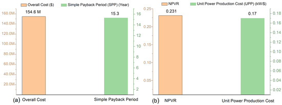 The net present value (NPV) and net present value ratio (NPVR) are essential indicators used to assess the economic feasibility of the proposed power systems. When both the NPV and NPVR values are positive, the system can be considered economically viable. These parameters are calculated using the following expressions [61]: