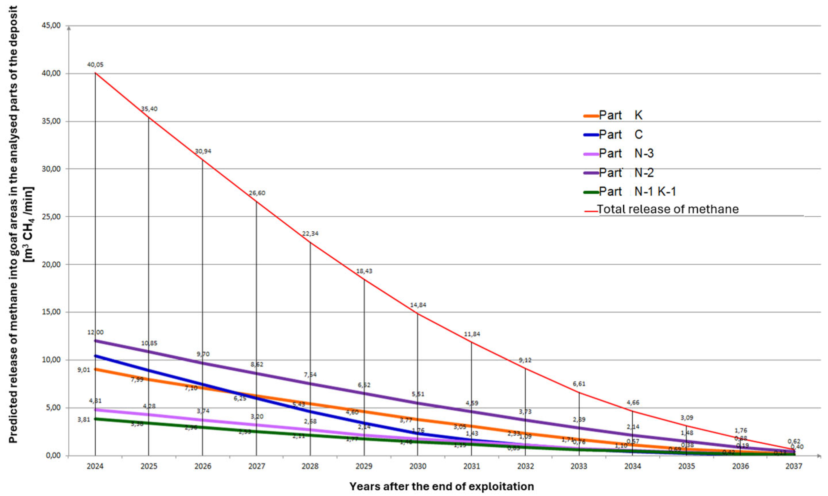 | No | Coal Seam | Part | Projected Average Release of Methane [m3 CH4/min] | End of Exploitation |