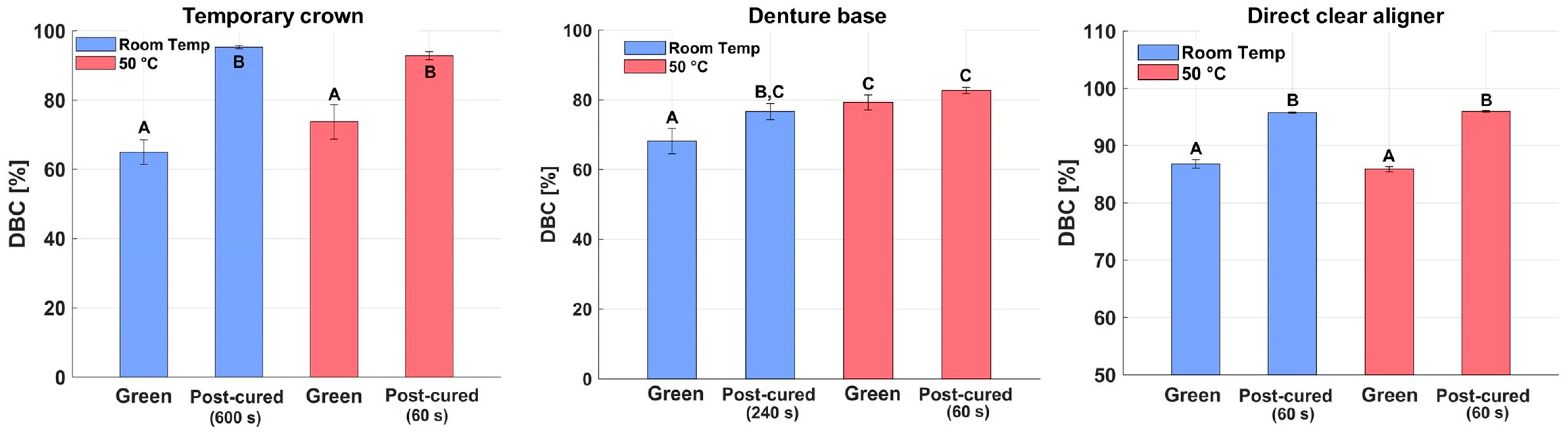 3.1.1. Results of DBC Test for Temporary Crown Resin