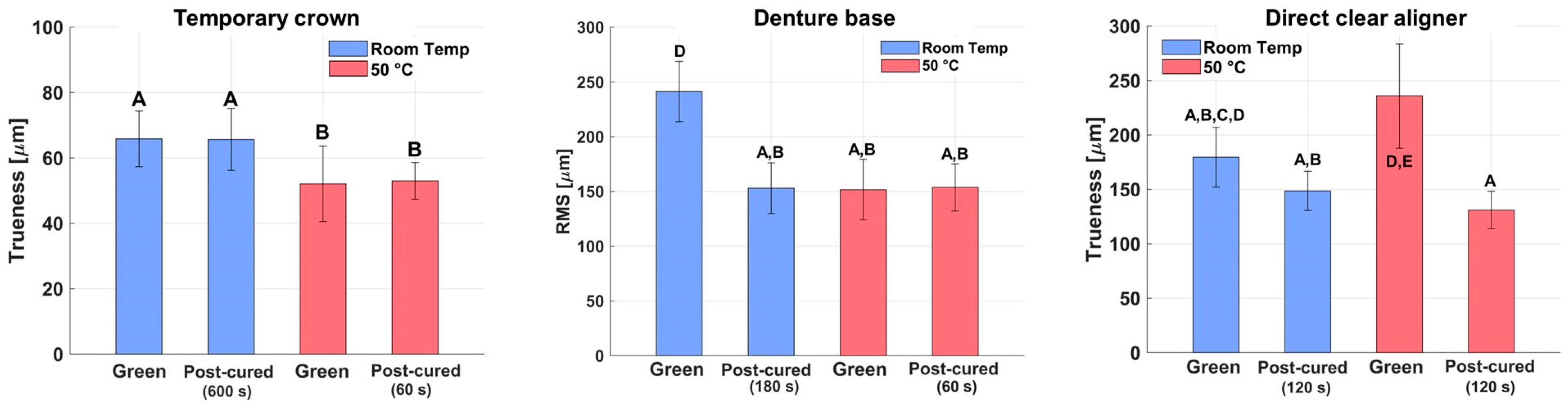 3.3.3. Results of Fabrication Reproducibility for Direct Clear Aligner Resin