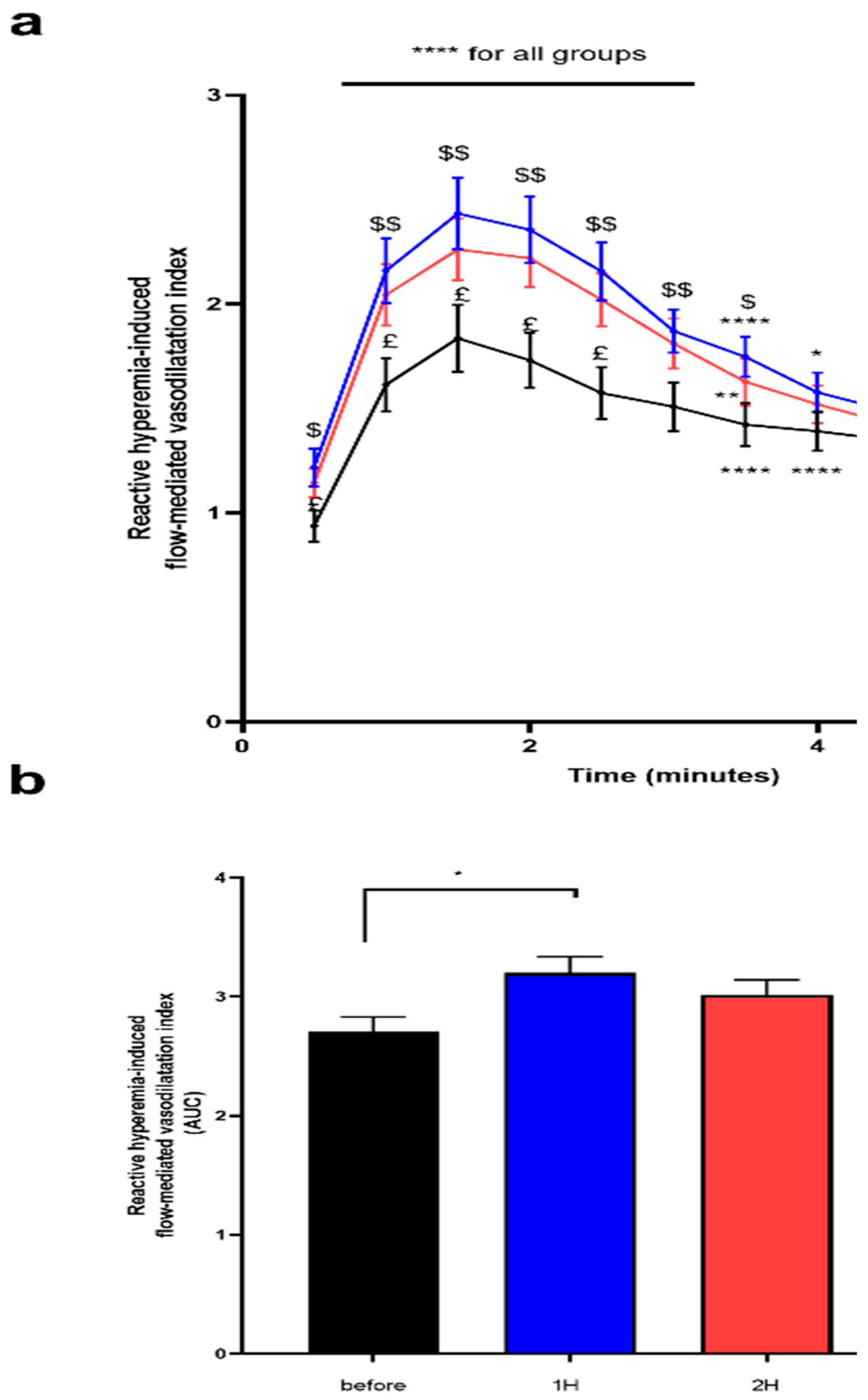 - Williams, J.S.; Bonafiglia, J.T.; King, T.J.; Gurd, B.J.; Pyke, K.E. No Acute Hyperglycemia Induced Impairment in Brachial Artery Flow-Mediated Dilation before or after Aerobic Exercise Training in Young Recreationally Active Males. Eur. J. Appl. Physiol. 2023, 123, 2733–2746. [Google Scholar] [CrossRef] [PubMed]