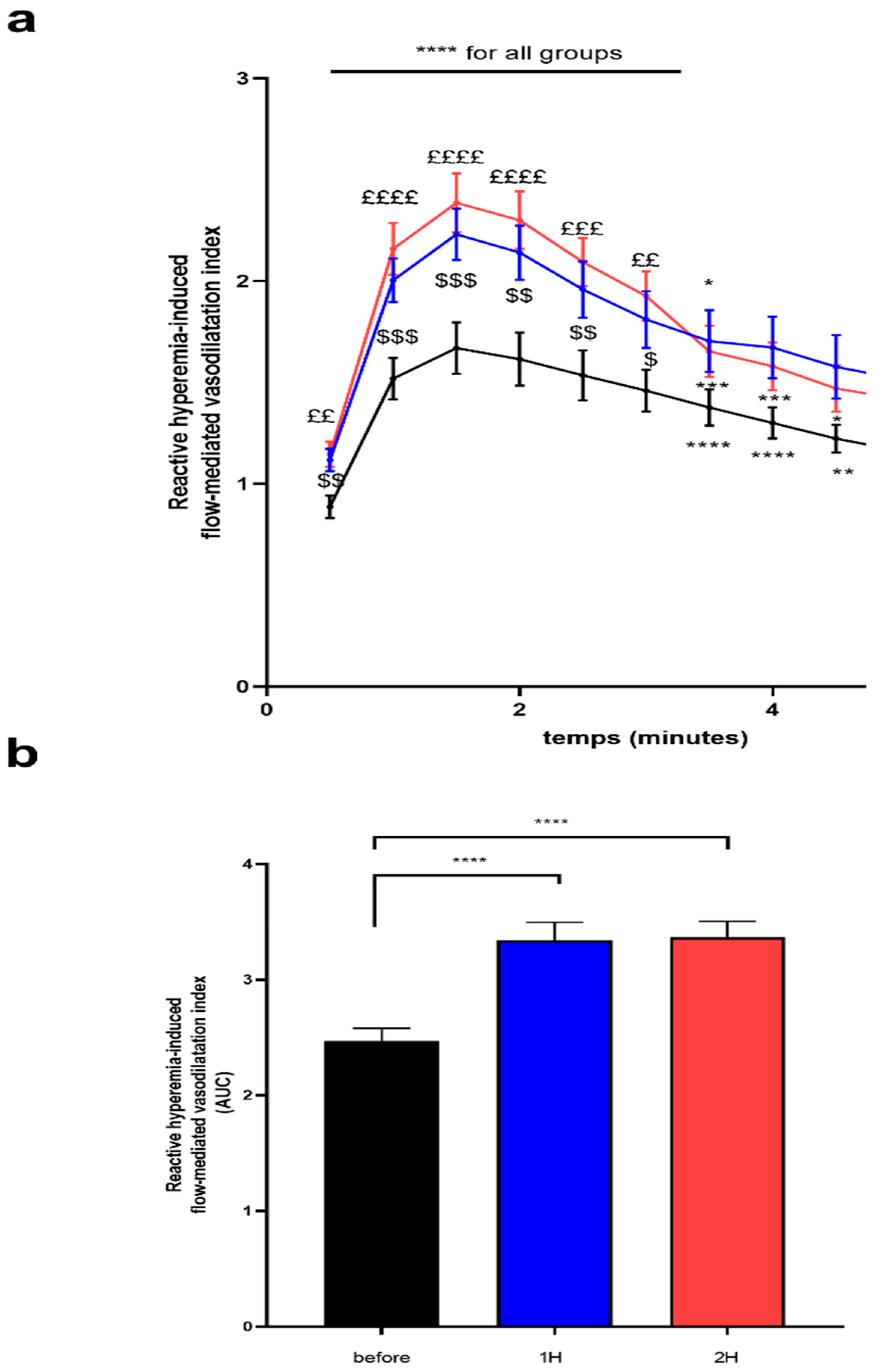 3.3.1. RHI Kinetic After Control Juice Intake, with a Low Polyphenol Content (Apple Juice)