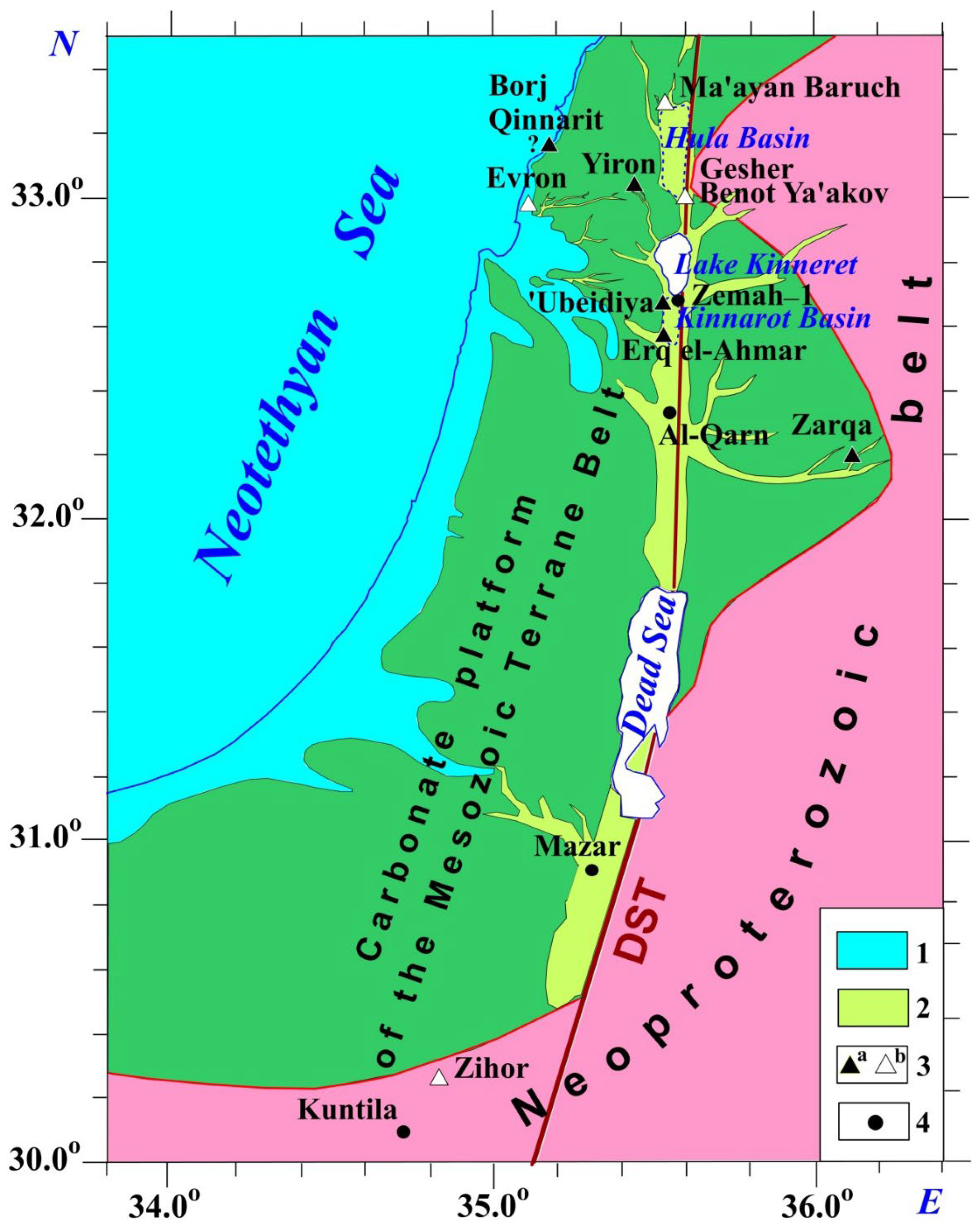 - Mor, D.A. A time-table for the Levant Volcanic Province, according to K-Ar dating in the Golan Heights. Isr. J. Afr. Earth Sci. 1993, 16, 223–234. [Google Scholar] [CrossRef]