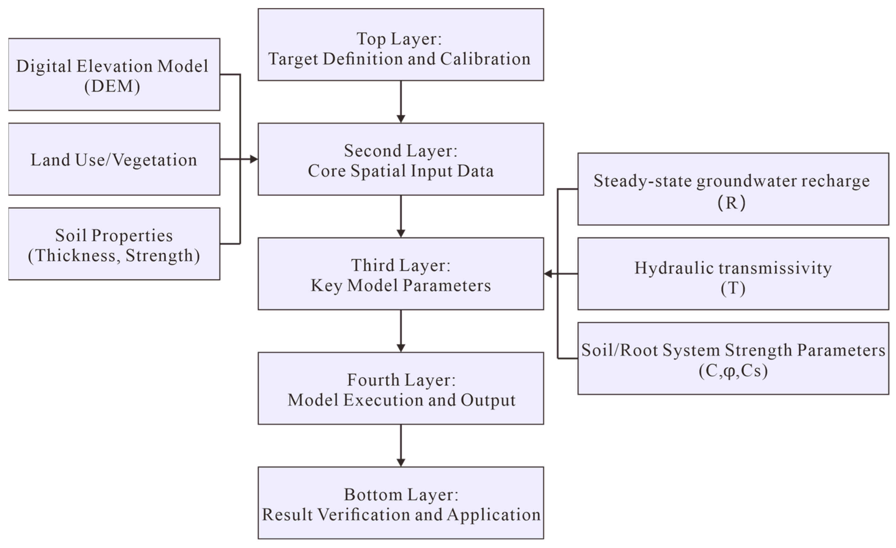 - Montgomery, D.R.; Dietrich, W.E. A Physically Based Model for the Topographic Control on Shallow Landsliding. Water Resour. Res. 1994, 30, 1153–1171. [Google Scholar] [CrossRef]