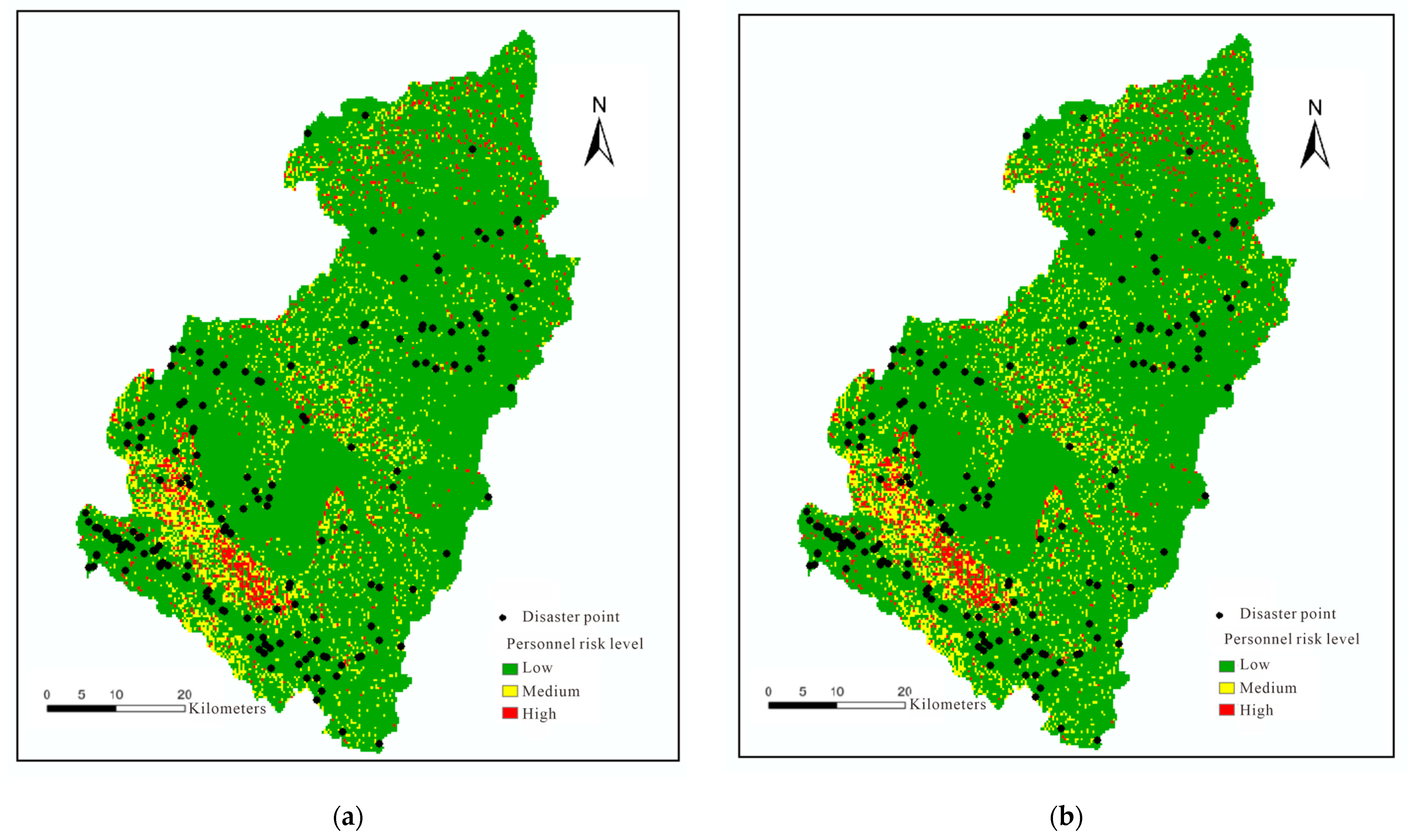 3.3. Personnel Risk Level Distribution Under Different Rainfall