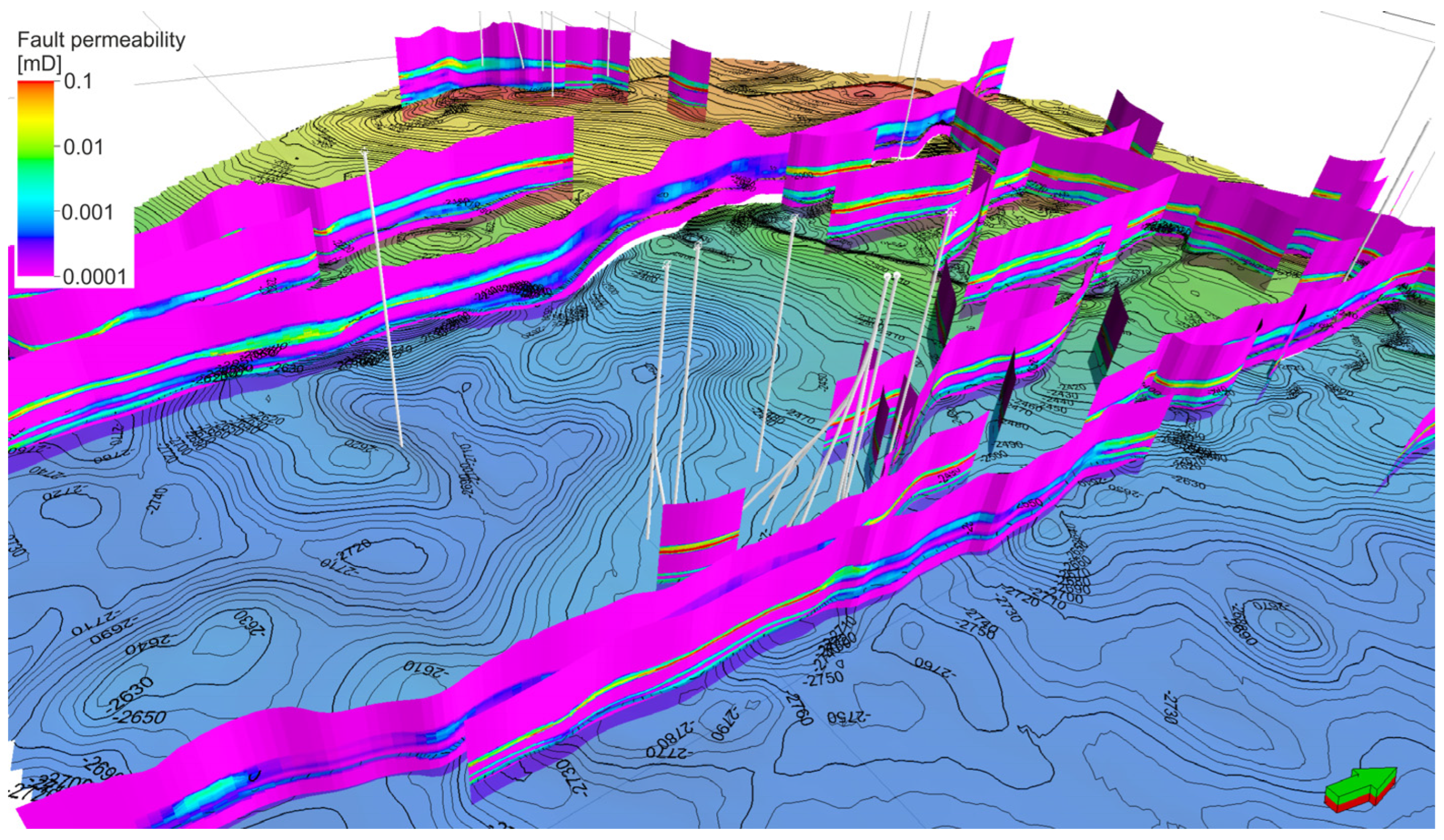 Figure 3. The introduction of these lithological models into the geological model enabled accurate reproduction of the variation and spatial distributions of porosity and permeability across both reservoir and sealing horizons.