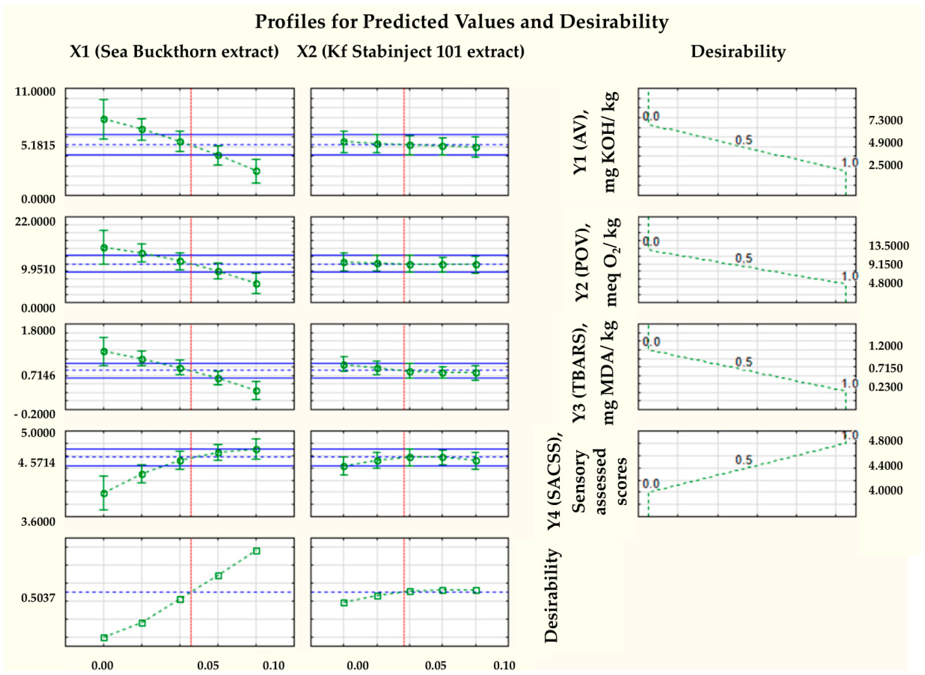 | X1—amount of sea buckthorn powder extract | −9.41197 | −8.8004 | 4.06 × 10−6 | ||