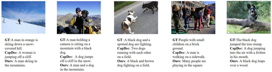 - Anderson, P.; Fernando, B.; Johnson, M.; Gould, S. SPICE: Semantic propositional image caption evaluation. In Proceedings of the European Conference on Computer Vision, Amsterdam, The Netherlands, 11–14 October 2016; pp. 382–398. [Google Scholar]