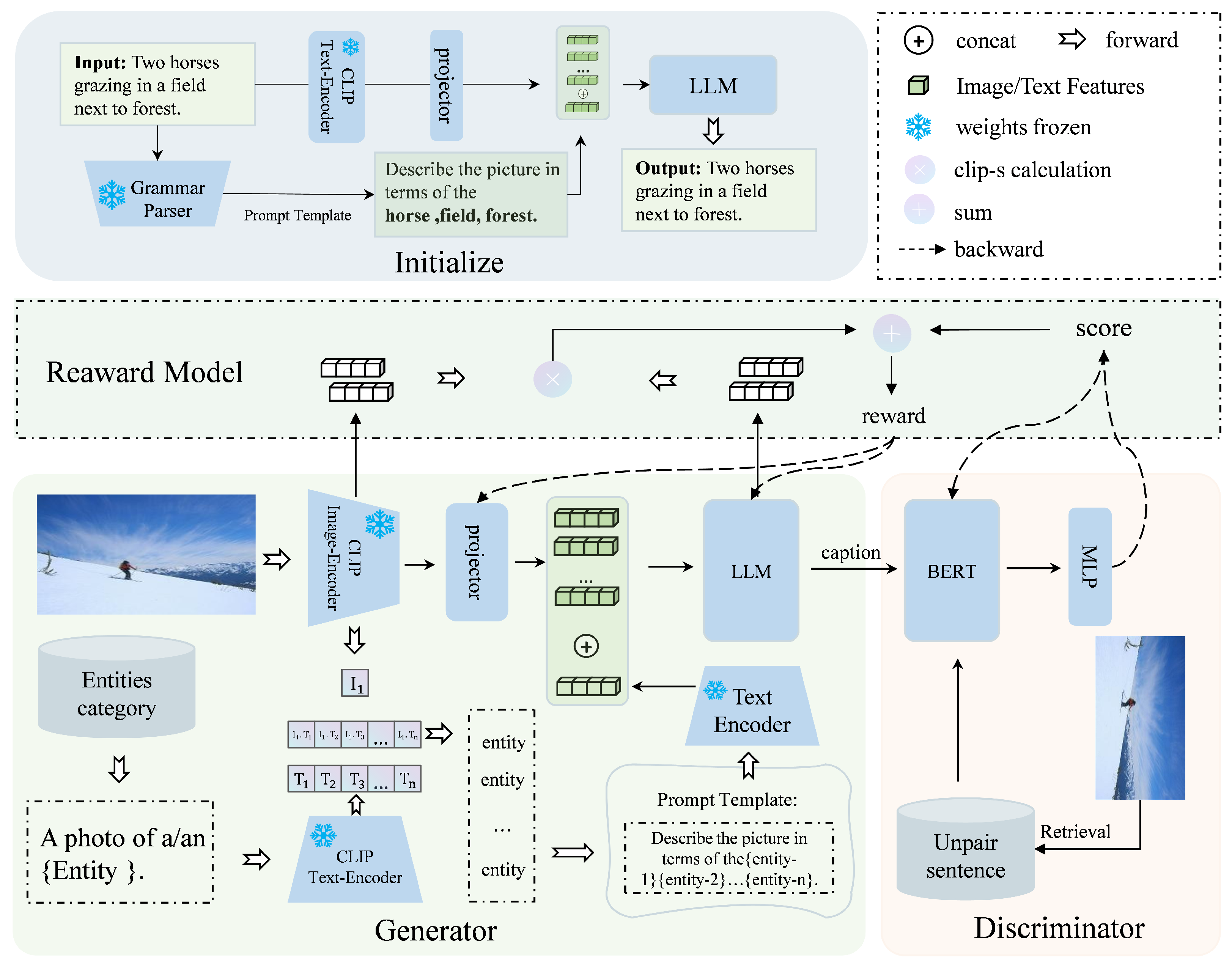 - Design a joint reward function that integrates image-text semantic alignment and language fluency, combined with a progressive multi-stage optimization strategy, to significantly enhance the semantic accuracy and naturalness of the generated text.