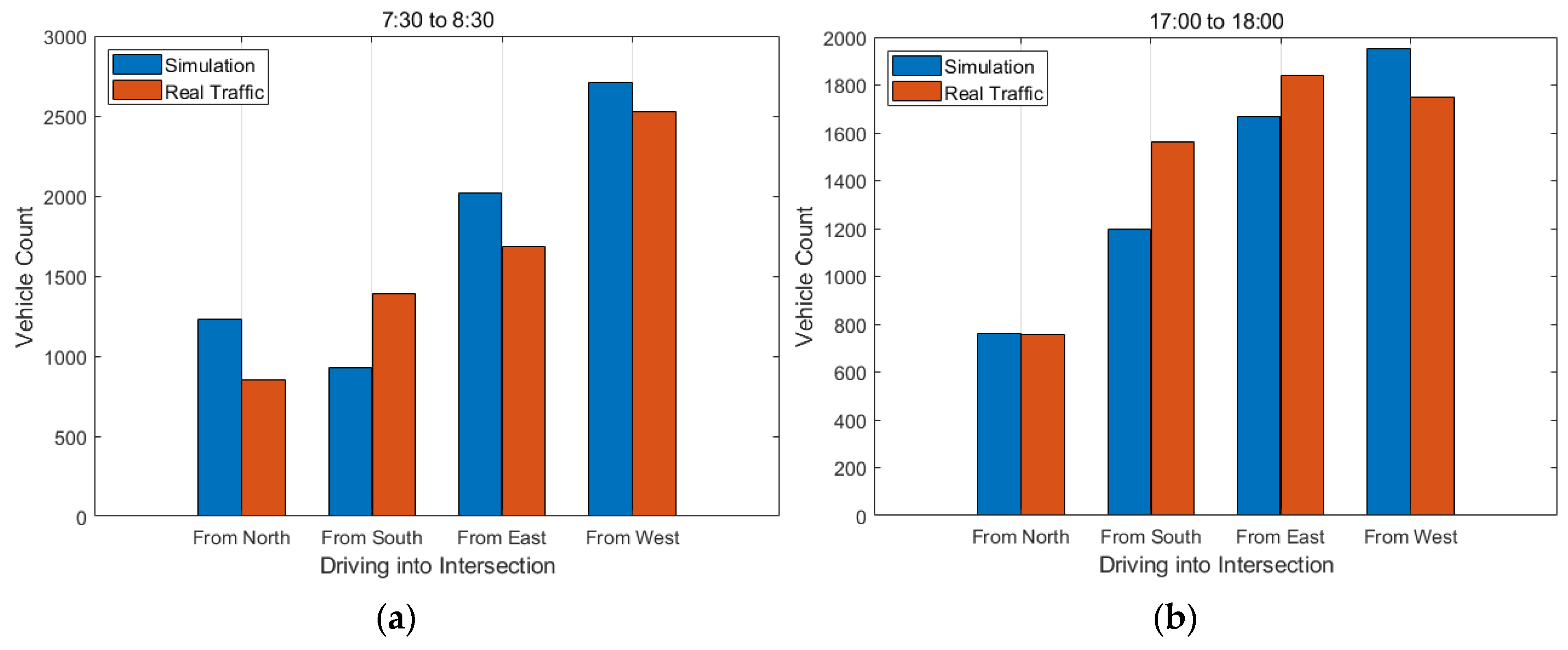 Figure 6). The RMSE (root mean square error) between the simulated and real vehicle counts at this intersection is 297.01.